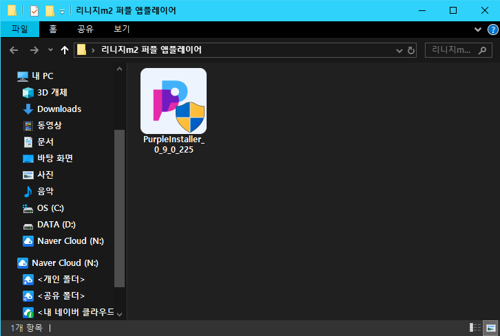 ▲ 게시글 상단에서 공유드린 퍼플 앱 플레이어 다운로드 링크를 통해 설치 파일을 내려받으면 위 이미지와 같이 퍼플 설치 파일이 다운로드됩니다.