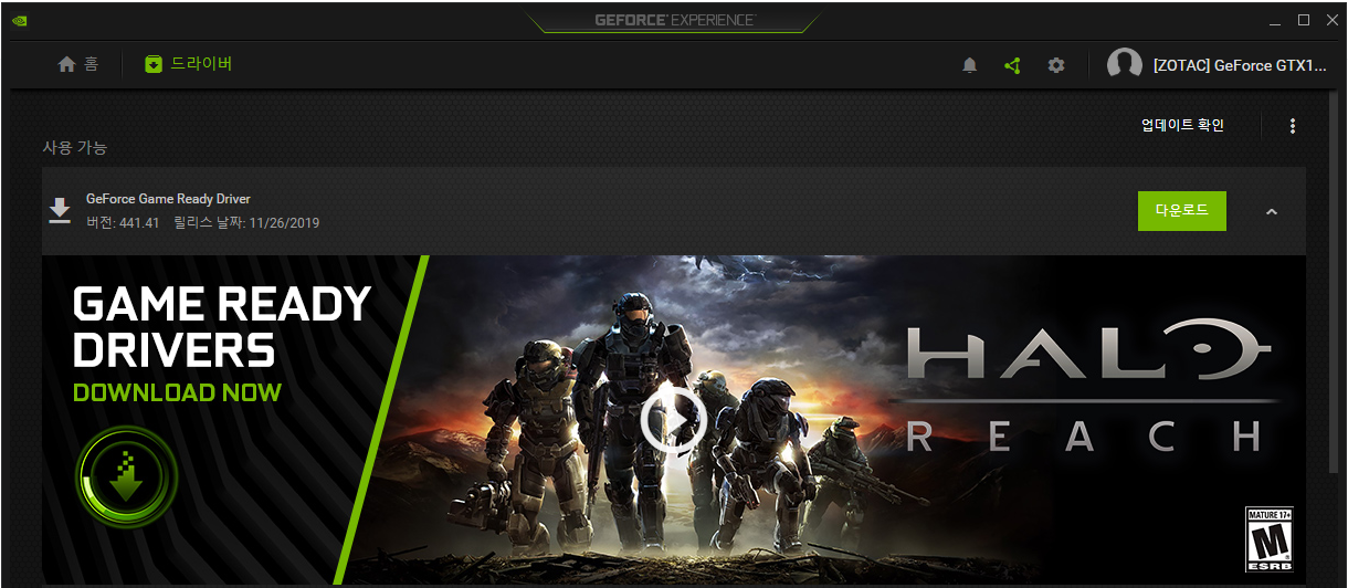 두번째 방법으로 엔비디아의 그래픽 카드 드라이버 유틸리티 프로그램인 지포스 익스피리언스를 사용하는 방법입니다. 위 이미지와 같이 내 컴퓨터 사양과 설치된 그래픽 카드를 분석하여 자동으로 적합한 그래픽 카드 드라이버를 찾아서 다운로드할 수 있게끔 도와줍니다.